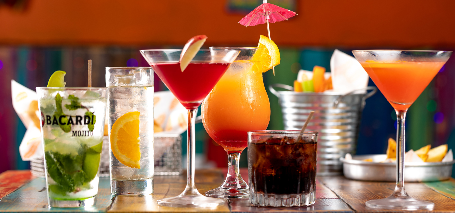 Aros de Cebolla, alitas búfalo, cáscaras de papa y mozzarella sticks.